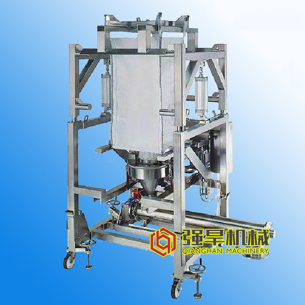 描述:1.通过叉车或打开安装在吨袋拆包机设备支架上的电动葫芦开关,操纵叉车或者将吨袋固定在吨袋吊架上提升至进料口——注意将吨袋固定到吊架上移动到高处时,吨袋下方不要站人。2.夹袋装置将吨袋固定好,人工将包装袋下料口拆开——注意人工打开后,及时关闭舱门,防止粉尘污染工作环境。3.打开流量控制阀和附带的振动或拍打装