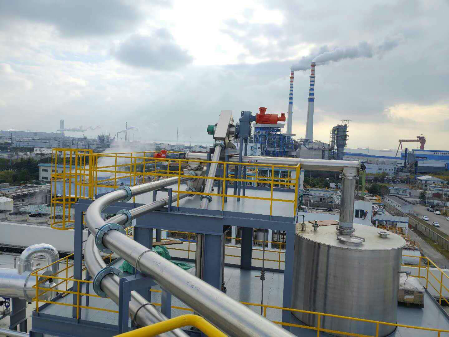 管链输送机是一种输送粉状、小颗粒状及小块状等散状物料的连续输送设备,可以水平、倾斜和垂直组合输送。一般用于精细化工、农药矿石、建筑材料、食品工业等。