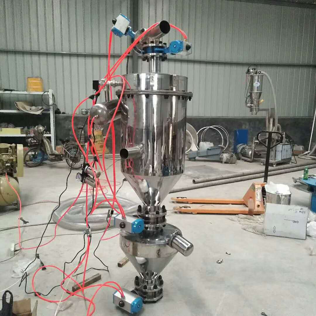 气动真空上料机是利用压缩空气通过真空发生器产生高真空实现对物料的输送,不需要机械式真空泵,具有结构简单、体积小、免维修、噪音低、控制方便、消除物料静电好符合GMP要求等优点。真空发生器产生的高真空,使被输送的物料杜绝了分层现象,保证了混合物料成分的均一性,是压片机、胶囊填充机、干法制粒机、包装机、粉碎机、振动筛等机械自动上料的首选设备。